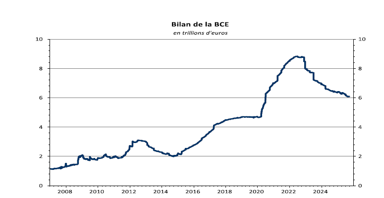 Depuis 2023, nous assistons à un changement de paradigme majeur : le passage du QE au quantitative tightening (QT), également appelé resserrement quantitatif. Cette politique inverse consiste pour les banques centrales à réduire progressivement la taille de leur bilan, soit en vendant des actifs, ne soit en ne réinvestissant pas les montants des obligations arrivant à échéance.